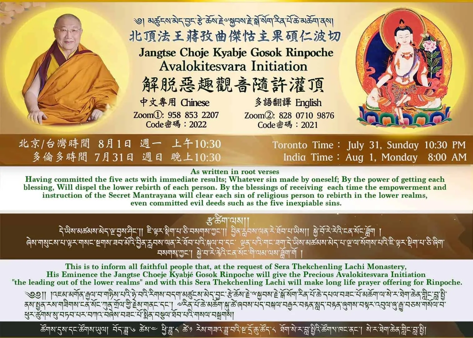 無等蔣孜曲傑怙主果碩仁波切 觀音隨許灌頂 2022-08-01 || Jangtse Choje Kyabje Gosok Rinpoche Avalokitesvara Jenang Initiation, August 1, 2022