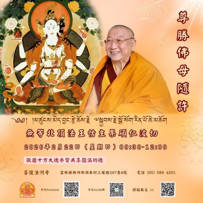 2/22(週日)雲林菩提法洲寺傳授《尊勝佛母隨許》。